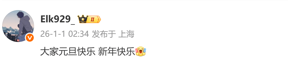 虎撲01月01日訊 2026年新年伊始,WBG選手Elk送上元旦祝福: