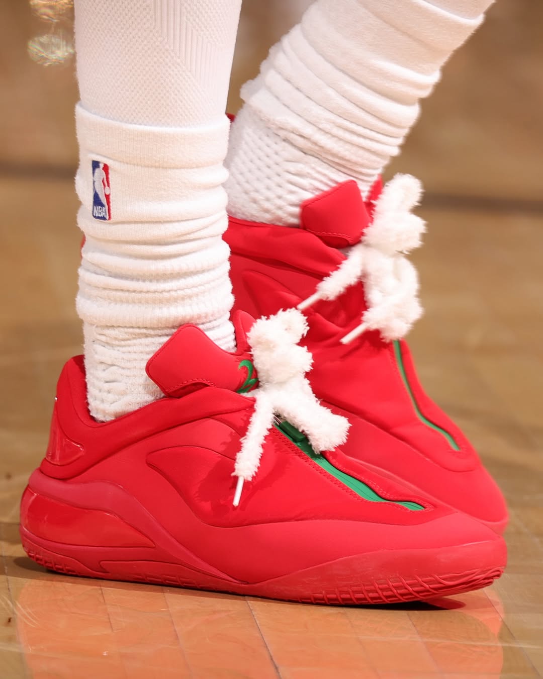 比賽中,克拉克森上腳圣誕配色Converse Shai001。